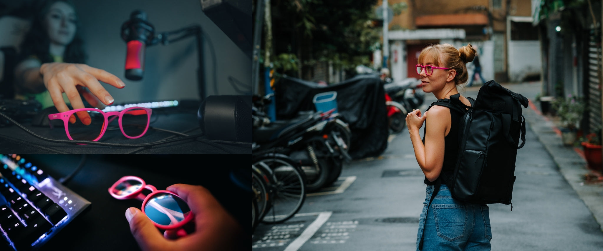 Wenn Sie sich in einer Umgebung befinden, in der Sie von einem Bildschirm zum anderen wechseln (Gruppenarbeit, Coworking usw.), dann können Sie mit einer Blaulichtbrille auch besser geschützt sein.