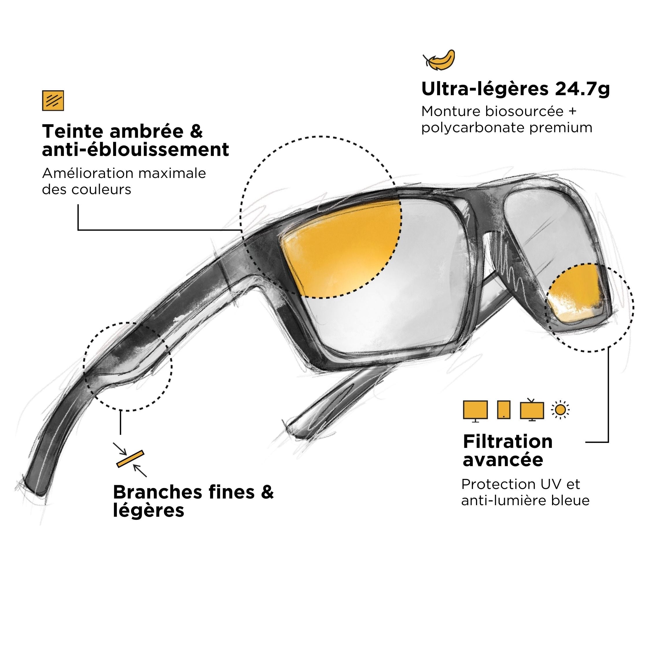 Bundle = 1 Paar klare Gläser + 1 Paar bernsteinfarbene Gläser.