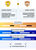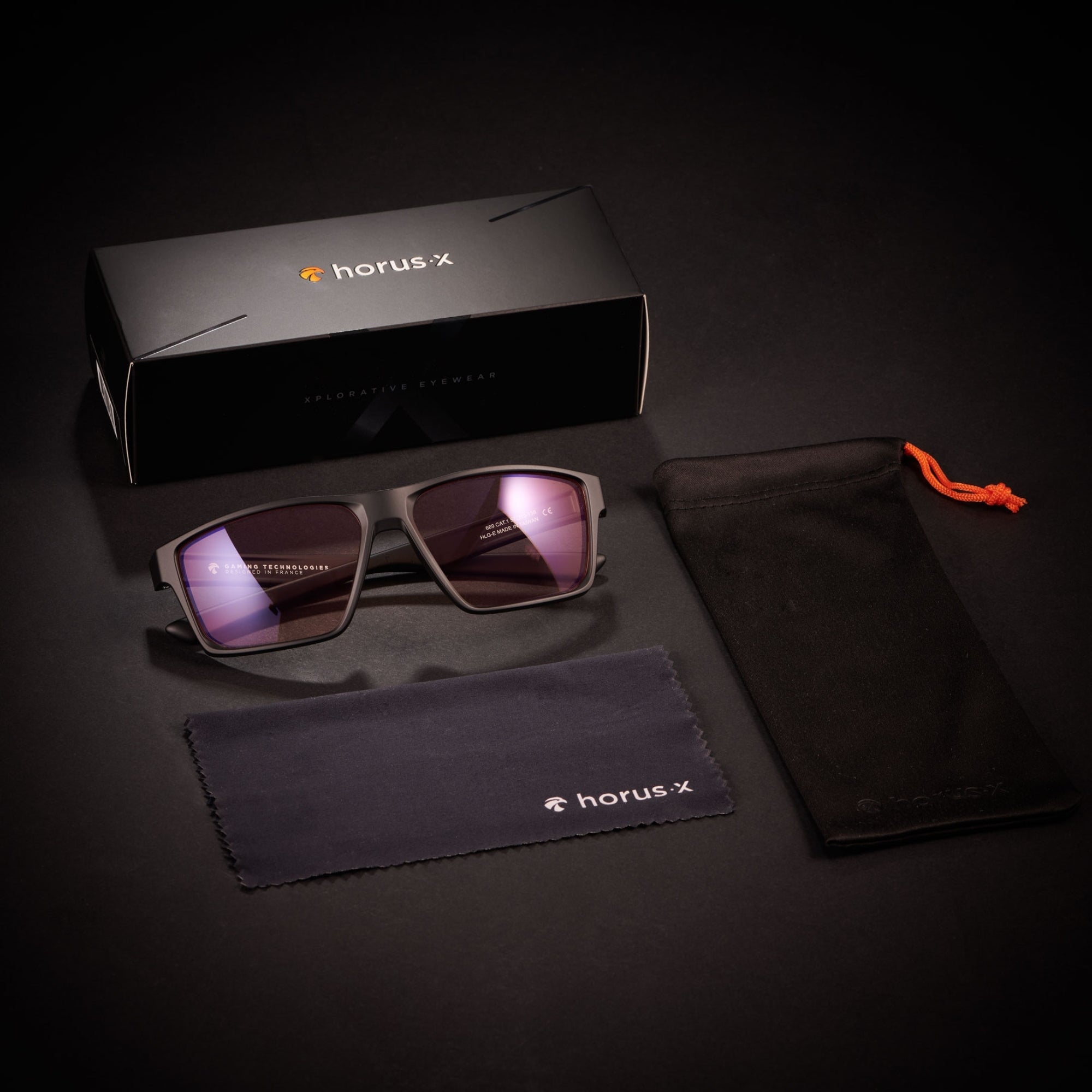 Wir haben sehr hart daran gearbeitet, unsere Horus X Gaming-Brille mit den besten Materialien auszustatten. Bügel und Gläser sind aus Polycarbonat, einem ultraleichten und weichen Material. Unübertroffener Komfort, optimiert für das Tragen von Headsets.