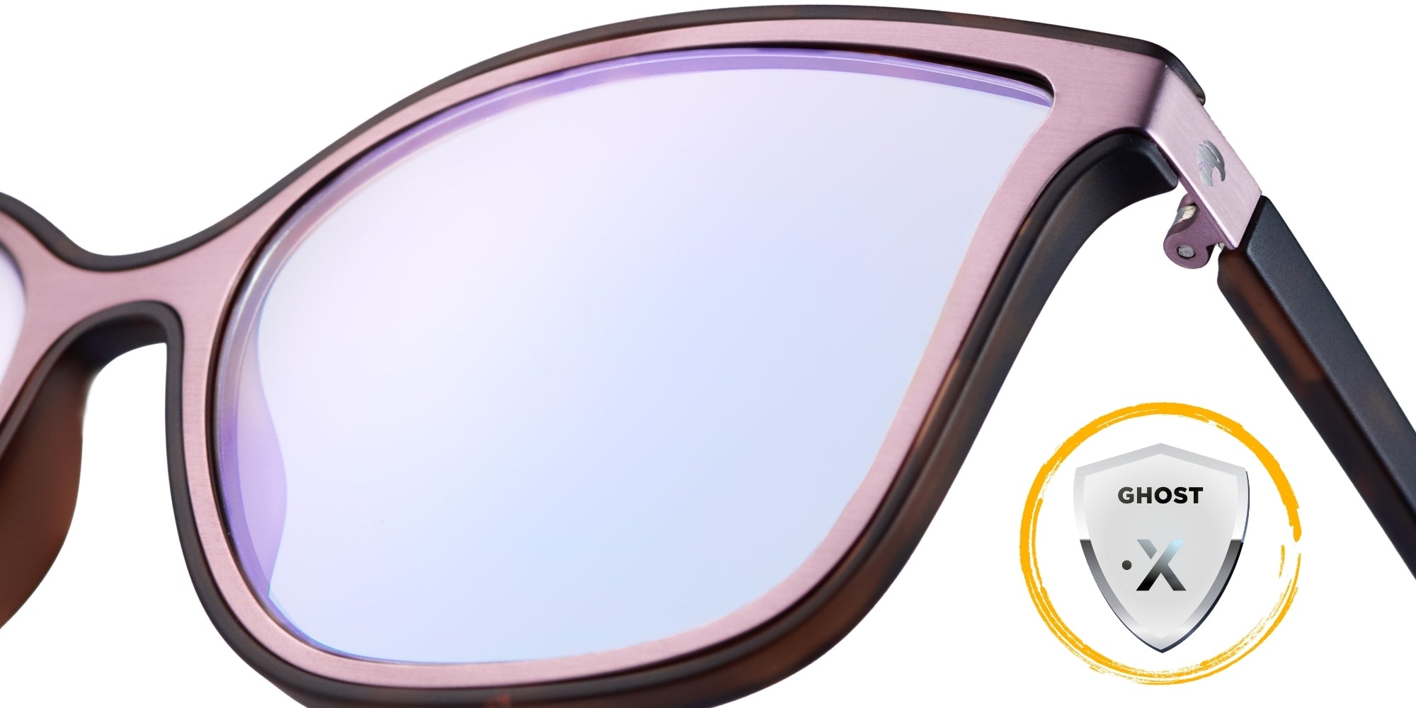 Diese Damenfassung greift den zeitlosen Charme der Schmetterlingsbrille auf und verleiht ihr einen Hauch von Modernität. Die innovative Verbindung von Polycarbonat und gebürstetem Metall schafft ein einzigartiges Design und behält gleichzeitig das weite Sichtfeld dieses ikonischen Modells bei. Die patentierte Ghost®-Technologie filtert effektiv blaues Licht für optimalen Sehkomfort.