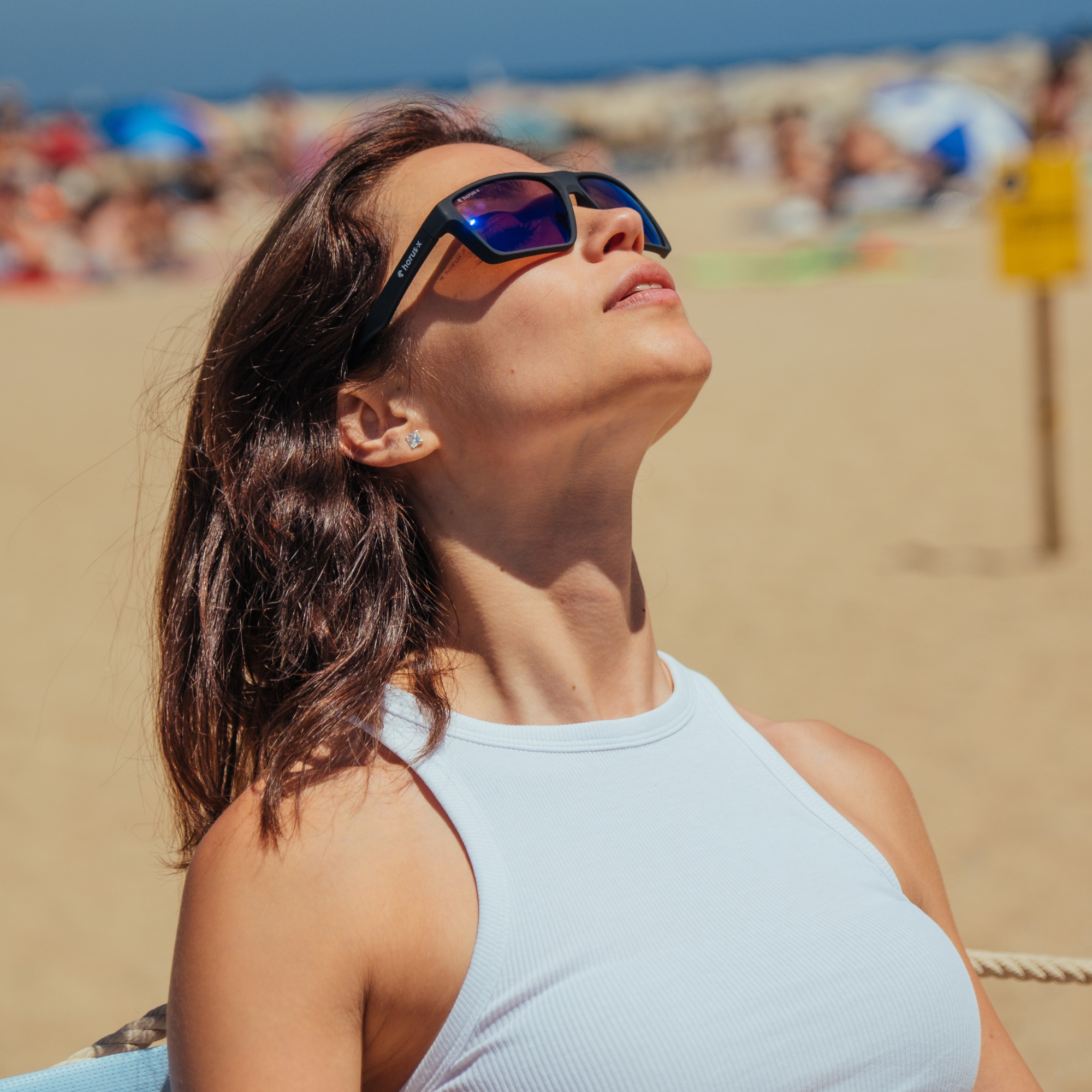 Eine außergewöhnliche Filterung, die 100% der UV-Strahlen (A, B, C) eliminiert und es Ihnen ermöglicht, Ihre Bildschirme auch in Outdoor-Bereichen bequem zu nutzen. Diese Brille geht noch einen Schritt weiter als Ihre herkömmliche Brille, indem sie das schädliche blaue Lichtspektrum herausfiltert. Wenn Sie wie wir von Ihrem Liegestuhl im Sand am Wasser aus arbeiten, hilft Ihnen unsere Brille dabei, in jeder Situation produktiv zu bleiben