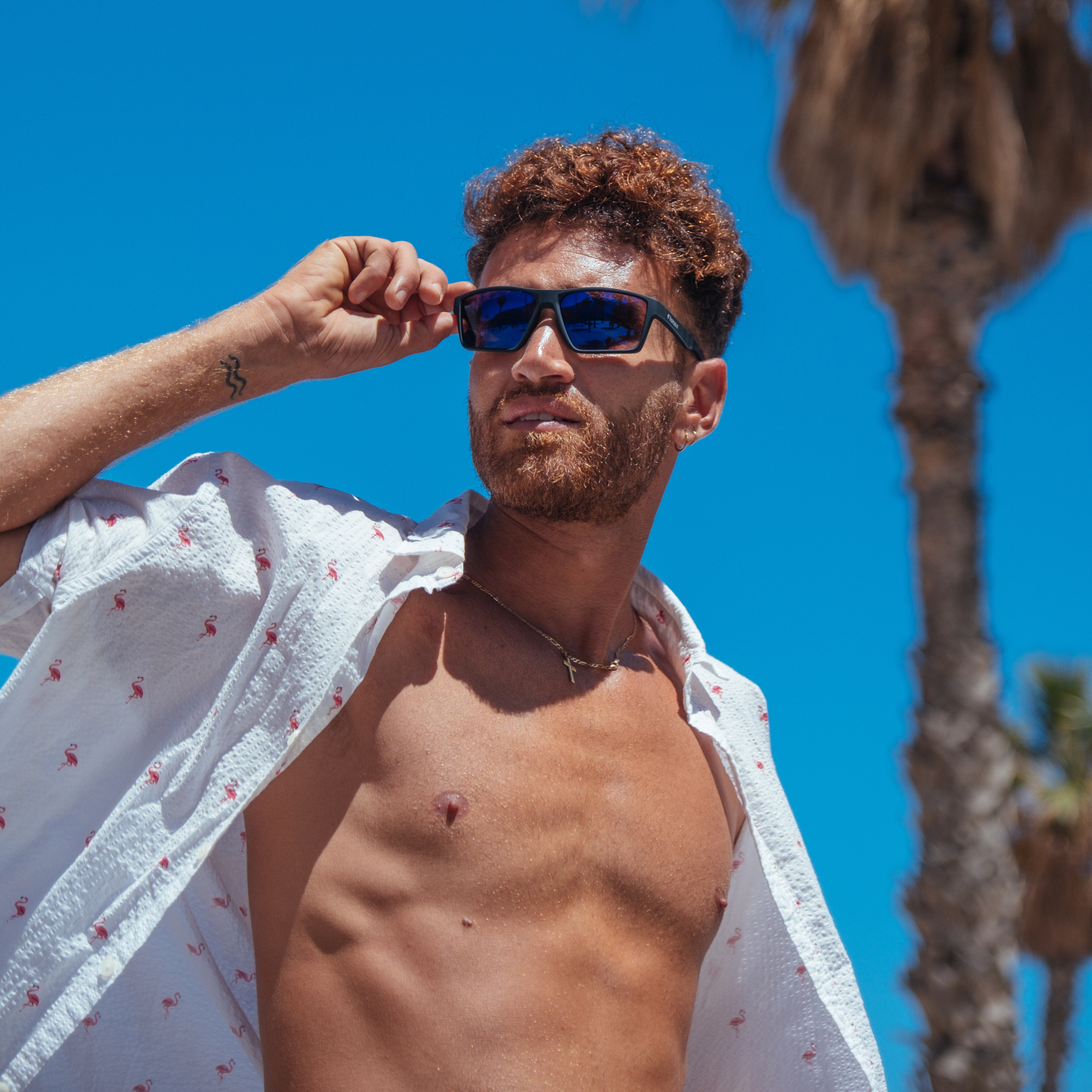 Ein aerodynamischer Rahmen mit unseren Signature-Sonnenschutzgläsern (Cat 3, UV400, Blaulichtfilter, Anti-Reflexion) für die Abenteurer der wiedergefundenen Arche.