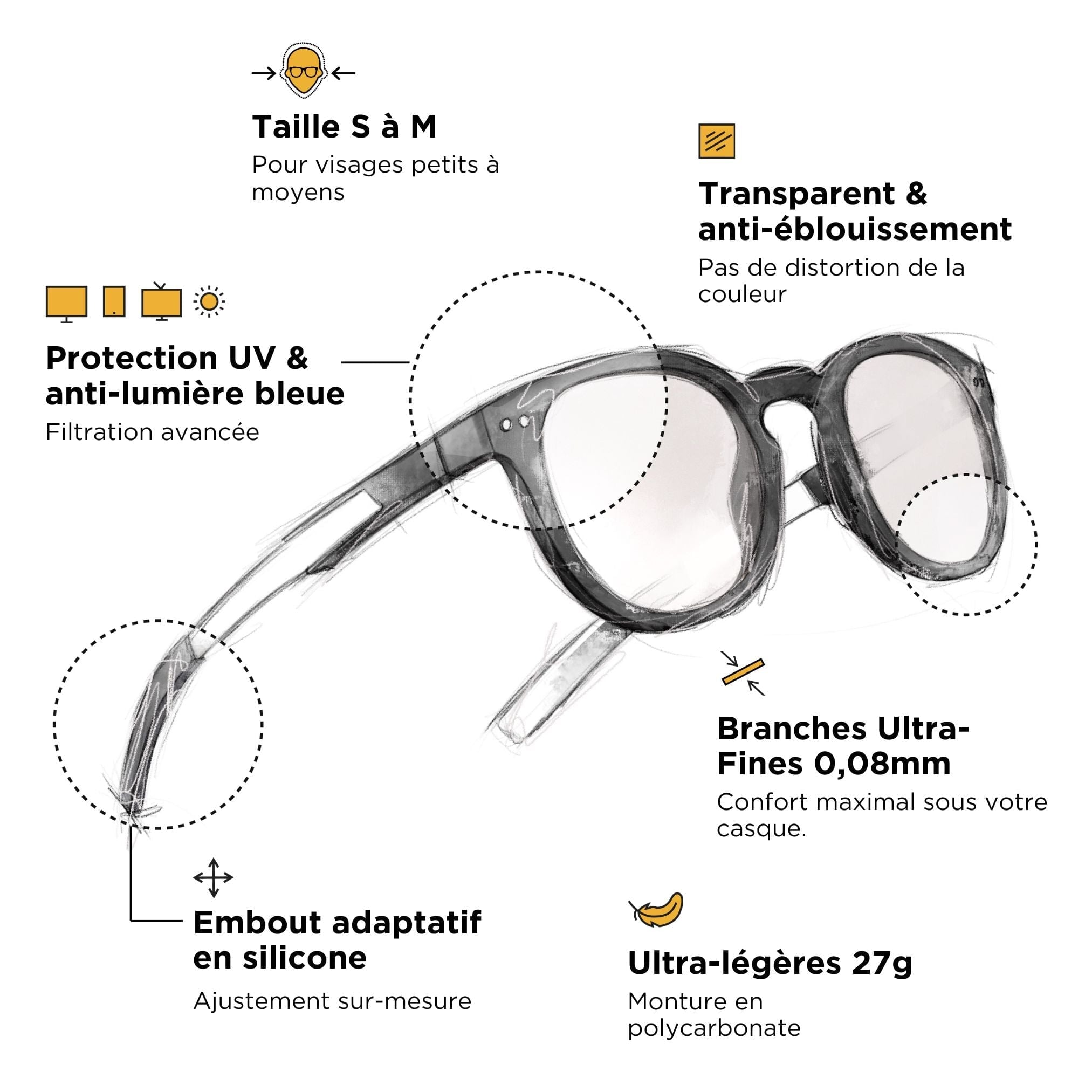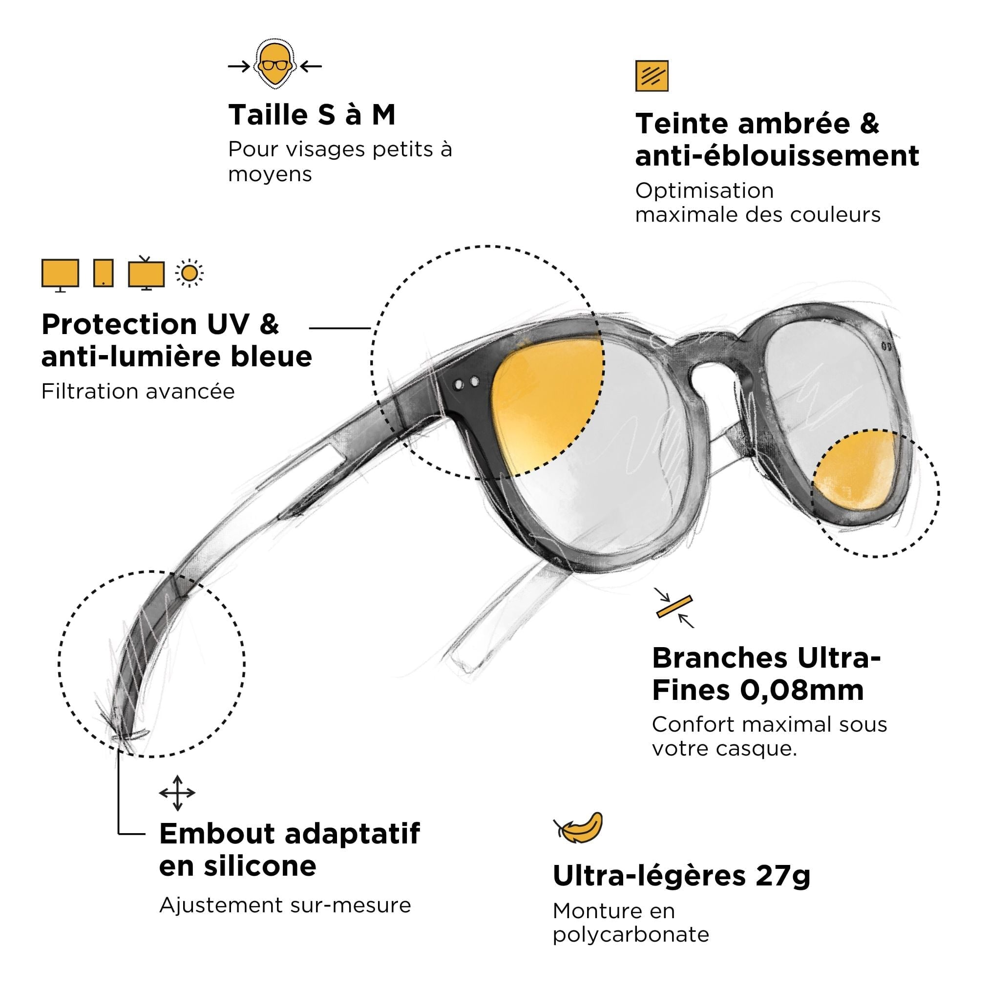 Widerstandsfähige und langlebige Anti-Blaulicht-Brille aus Polycarbonat (Material für den ballistischen Schutz) + verstärkte Metallscharniere. Wir vertrauen unseren Brillen so sehr, dass sie eine lebenslange Garantie haben . Das ist richtig!